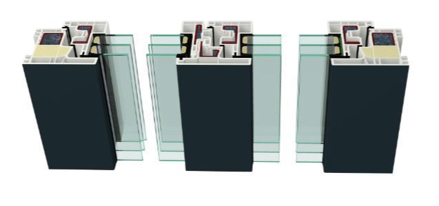 Neben der flächenversetzten Profilkombination 8012/8092 mit fünf Kammern steht auch ein halbflächenversetzter Flügel und ein halbrunder Flügel zur Verfügung. Den flächenversetzten Flügel gibt es in drei Ausführungen: schmal mit 70 mm (für kleine Fenster), mittel mit 78 mm und als breiten Balkonflügel mit 105 mm Bauhöhe.