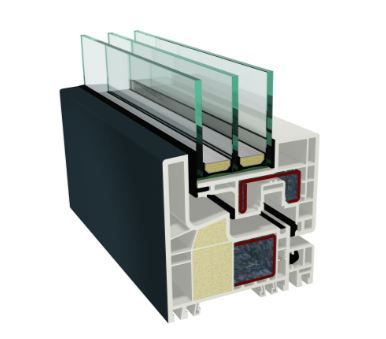 - 5-Kammer-Aufbau in Blendrahmen und Flügel
