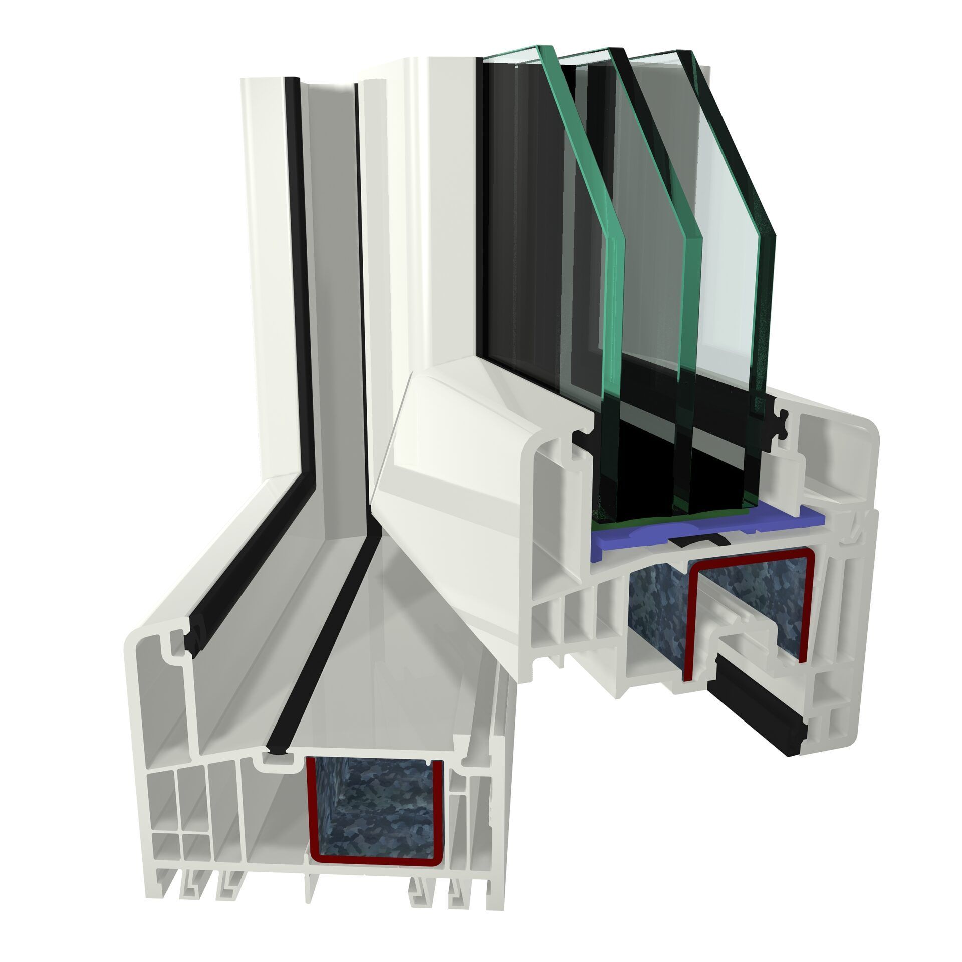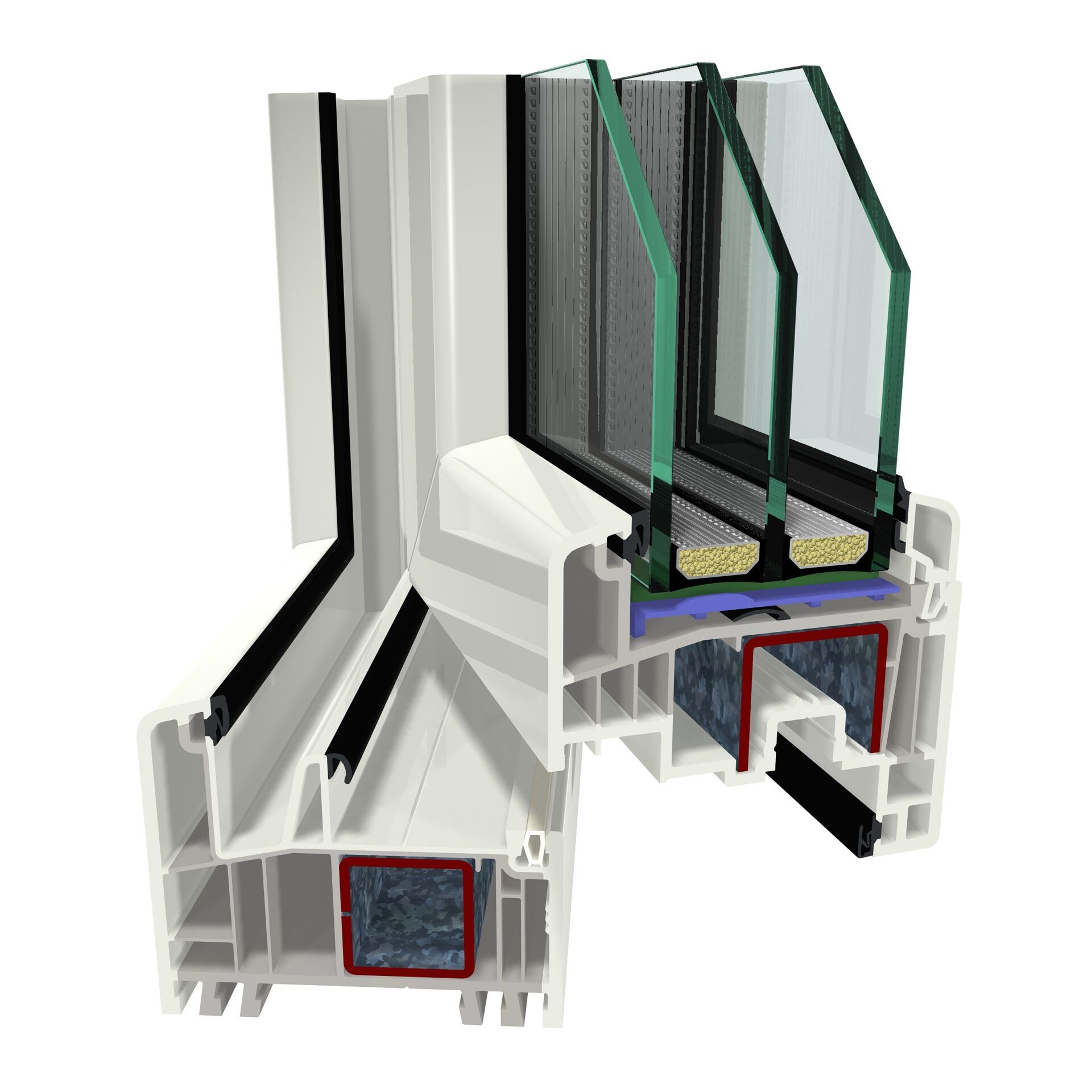 - 6-Kammer-Aufbau in Blendrahmen und Flügel